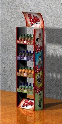 Expositor de chão para bebidas c/ 4 cestos, testeira, laterais e pintura eletrostática.